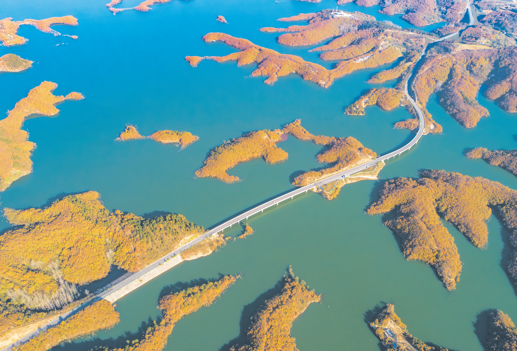 冬季的丹江口库区,山林尽染,水库水面清澈如镜,山水相融,美如画卷。记者 刘坤 摄