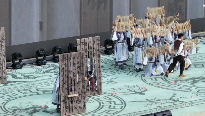 下午2点30分,由云梦初剧团表演的开场歌舞《秦简颂》登台。简单厚重的旋律搭配现代的演绎,让观众在歌舞中领略千年文字的力量,活动正式拉开帷幕。