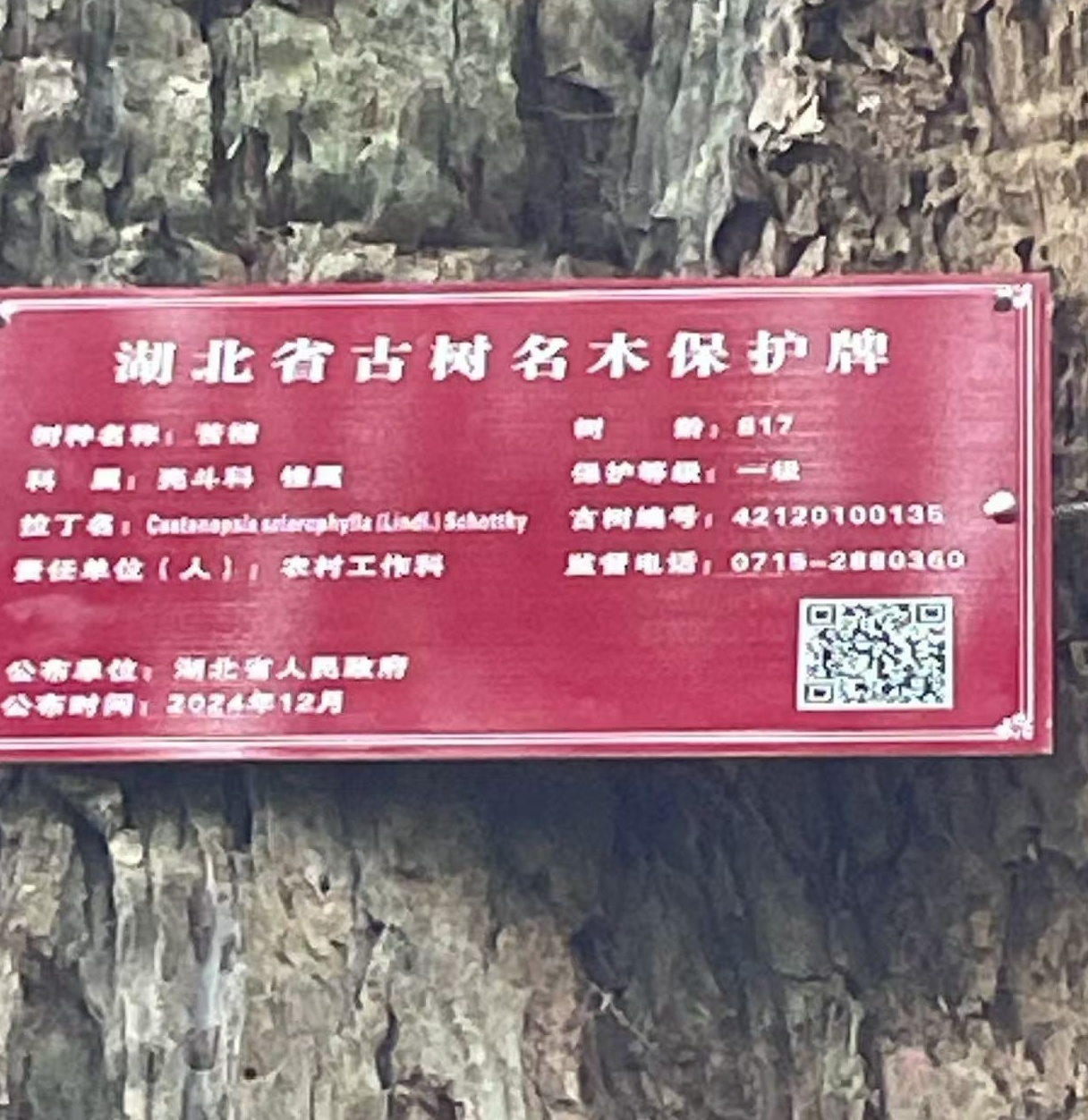 湖北日报讯(记者万雷猛、通讯员张凯)“小心别碰树枝。”近日,九宫山保护区资源保护科干部程康站在土阶尖上,双手举着800年树龄的古树保护牌。慢慢地取下来后,他准确无误地把符合上级规格的新标牌挂回了原来的位置。这一场景是九宫山保护区古树名木保护密集更新的实例。更换新的树木保护板。 。在湖北省林业局指导下,九宫山自然保护区资源保护部门统筹推进,实现了区内登记的380株古树名木全覆盖——一级古树12株,二级古树120株,三级古树248株。每个“活文化新的保护牌既实用又科普:正面标明了古树的树龄、树种、主题等基本信息,连胸围尺寸等基本数据都准确显示。比如一级古树810年的树龄一目了然;背面创新性地融入了九宫山保护区专属二维码,参观者可扫描 实时回顾古树背后的生长历史、生态价值、当地人文故事,将原本“沉默”的古树变成公众亲近自然、了解生态的便捷窗口。 “古树生存在生态遗产中,承载着当地的记忆和文明。只要保护好自己的眼睛和家人,我们就一定要珍惜这些生态资产。”更换完最后一块防护板后,程康径直走了过去,动作轻柔。用手指拂过粗糙的树干。他表示,保护区工作人员将更加细心、更加耐心,让生态与文化的“双见证者”在九宫山生物多样性基因库蓬勃发展,续写百年生机。护林人员更换了古老的护树标志。 (照片由受访单位提供)