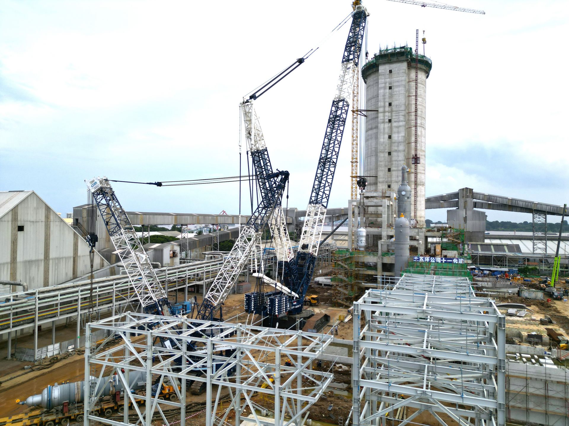尿素装置三台主要设备的筹集过程复杂、难度大,面临诸多挑战:一是通往老厂的道路狭窄,设备搬运十分困难;二是现场横切作业密集,场地面积有限,导致吊装站点有限,且地基土松软,需要进行场地处理工作。情况复杂,巨港持续大雨带来不利天气影响;三是吊装周期紧、任务重。甲铵冷凝塔作为该项目关键路径中的主要静态设备,对技术操作水平和组织协调能力提出了很高的要求,是一个并伴有较高的安全风险。